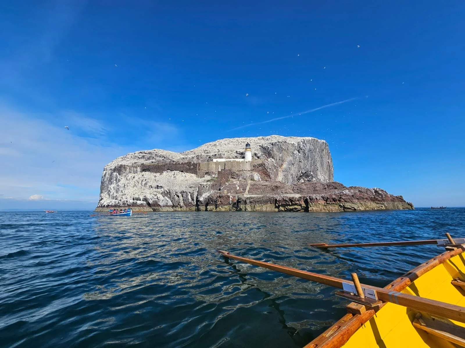Under an azure sky and led by the organisers, North Berwick Coastal Rowing Club, an Eskmuthe crew set off with fellow clubs from East Lothian, Edinburgh and Fife for a row in company round Bass Rock.
